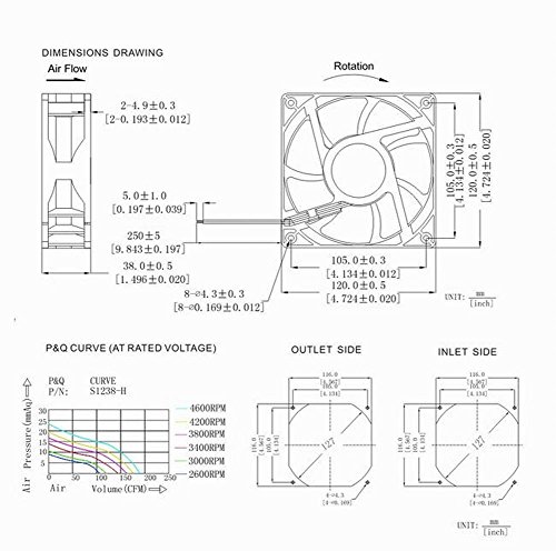 Gdstime Dual Ball Bearing Big Air Flow High Speed Preesure 4500rpm 12038 12cm 120mm X 38mm 5 Inch 12v Dc Cooling Fan