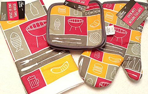 Home Collection - Barbeque - 2 Potholders, 2 Kitchen Towels, 1 Oven Mitt