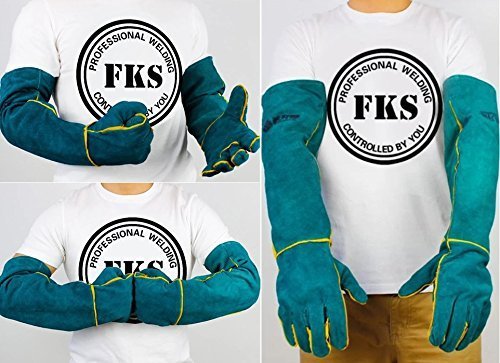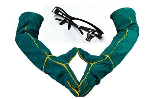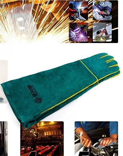 Safety glove protective gloves Anti-wear Heat resistant cowhide thick thick Long glove up to 58 cm elbow Protection Protection Green + Protective goggle set L 866