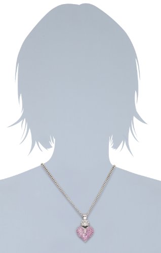 Sterling silver necklace featuring pendant with a pink cubic zirconia-filled heart donning a molded crown