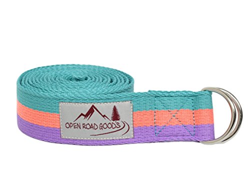 8ft Extra Long 100% Cotton Yoga Strap with Bag: Pastel Multicolor, Blue, or Black