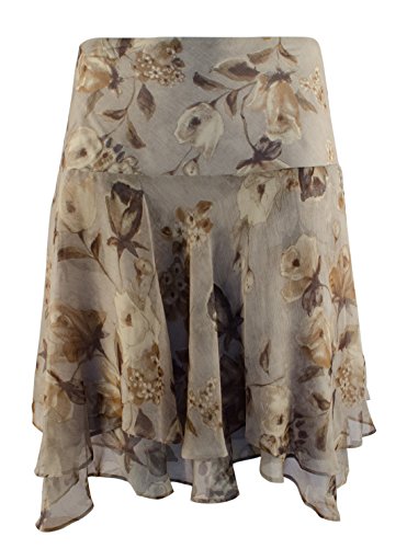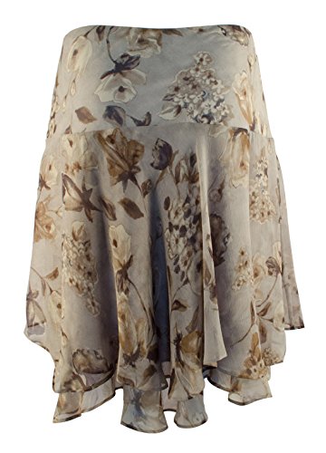 Product Description 100% Polyester. Women's plus size airy georgette skirt in a floral print. Concealed side zipper with hook-and-eye closure at left waist. Handkerchief hem. Fully lined. 0