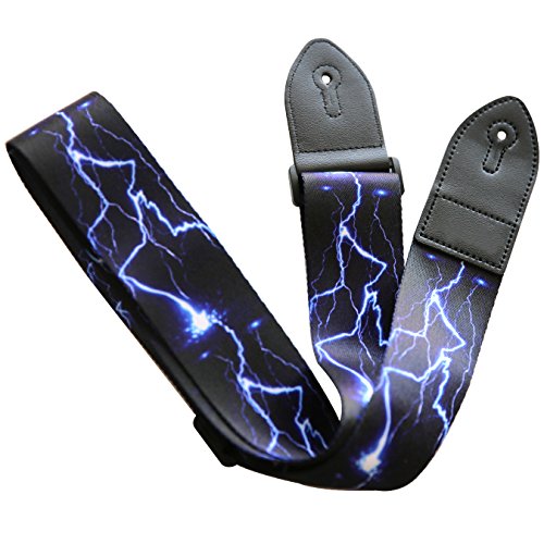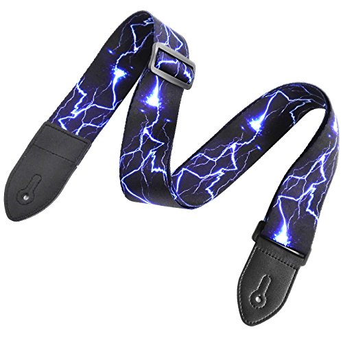 Guitar Strap for Acoustic Classical and Electric Guitar Jacquard Weave (MA-57-Blue lightning)