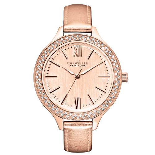-. Binding : Watch -. Brand : Bulova -. Department : womens -. EAN : 0042429507807 -. Feature : Round dress watch with rose gold-tone leather band featuring crystal-accented bezel and dauphine hands / Japanese-quartz movement with analog display / Protective mineral crystal dial window / Features jewelry-clasp closure / Water resistant to 99 feet (30 M): withstands rain and splashes of water, but not showering or submersion -. IsAutographed : 0 -. IsMemorabilia : 0 -. Label : Caravelle New York -. Manufacturer : Caravelle New York -. Model : 44L132 -. MPN : 44L132 -. PackageQuantity : 1 -. PartNumber : 44L132 -. ProductGroup : Watch -. ProductTypeName : WATCH -. Publisher : Caravelle New York -. ReleaseDate : 2013-12-17 -. Studio : Caravelle New York -. Title : Caravelle New York Women's 44L132 Japanese Quartz Rose-Gold Watch -. UPC : 042429507807