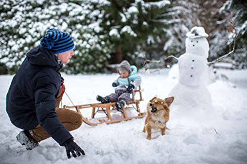 Der Schlitten kann leise und leicht gezogen werden. Die Rader konnen wahlweise an die Kufen gesteckt oder unter dem Sitz verstaut werden.