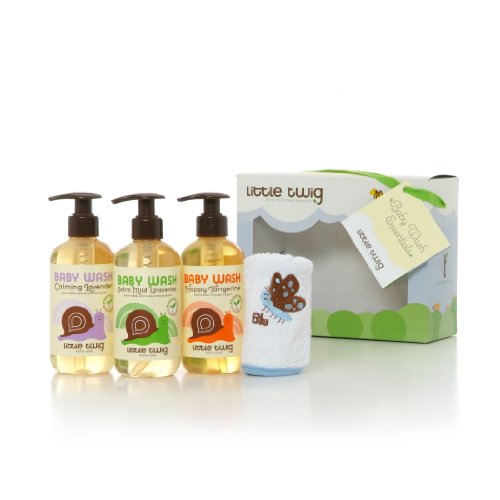-. Title : Little Twig All Natural, Hypoallergenic Baby Wash Essentials 4 Piece Gift Set with Washcloth, 8.5 Ounce Bottles