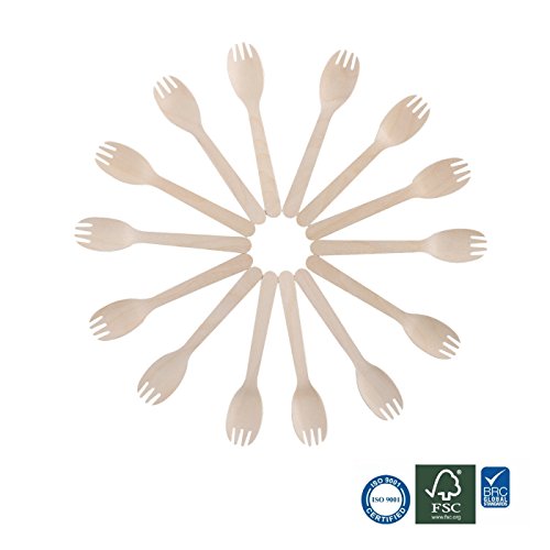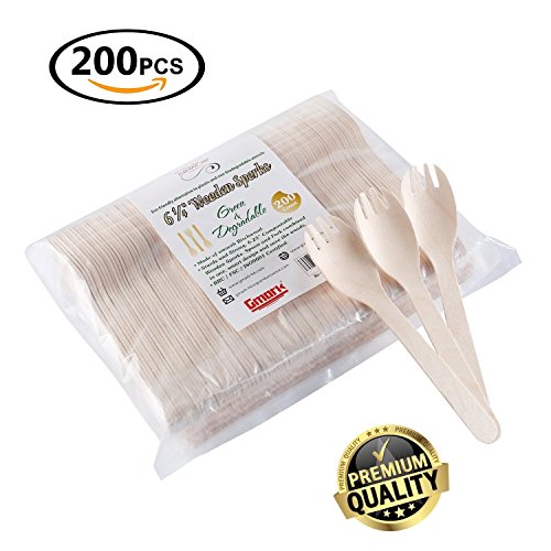 Gmark Eco-friendly Wooden Sporks 200 ct, Disposable Spoon Fork 2-in-1 Cutlery, 6.25" Birchwood Green Natural Product GM1033