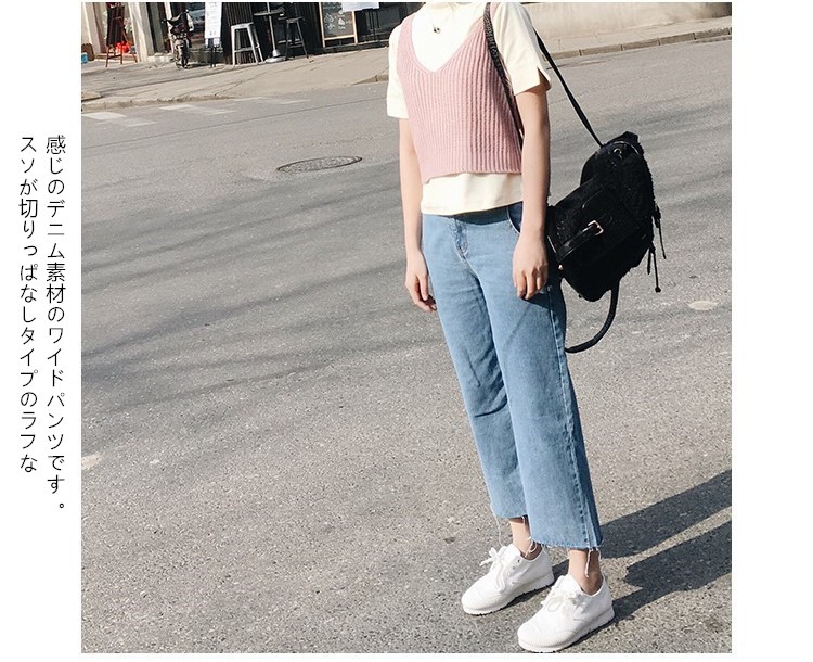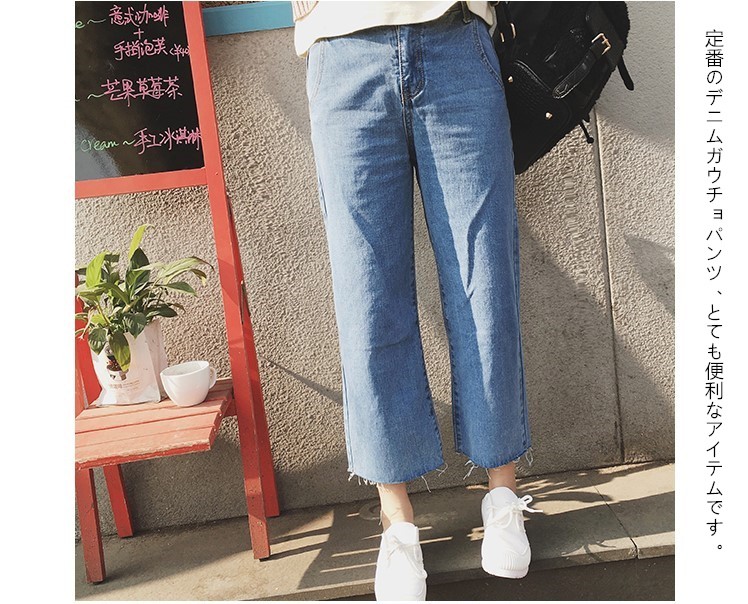 製品番号: 9059単位: CM (平置き採寸)素材: デニムスタイル: ワイドパンツサイズ: S / M / L色: ブルー彈性: 伸縮性なし----------------------★サイズ: S 総丈:82cm ウエスト:66cm ヒップ:89cm★サイズ: M 総丈:86cm ウエスト:70cm ヒップ:90cm ★サイズ: L 総丈:90cm ウエスト:74cm ヒップ:92cm サイズ表の実寸法は商品によって2cm程度の誤差がある場合がございます。