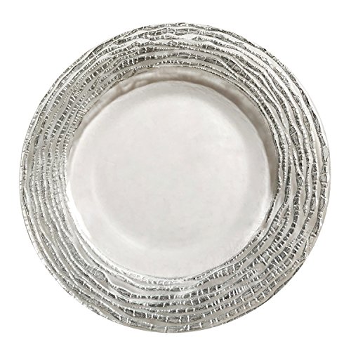 - Inspired by the organic tree bark like texture, there is a silver leaf around the rim of the bowl, while the center is clear glass