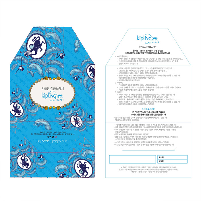 | A/S책임자와 전화번호 | 키플링온라인몰 A/S 상담실 / 02-3489-6415 |