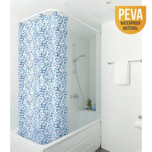 Tatkraft Pixel PEVA Shower Curtain Liner 100% Waterproof 180X180 cm + 12 Matching Metal Rings