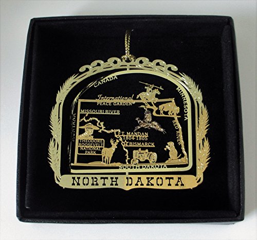North Dakota State Brass Ornament Black Leatherette Gift Box