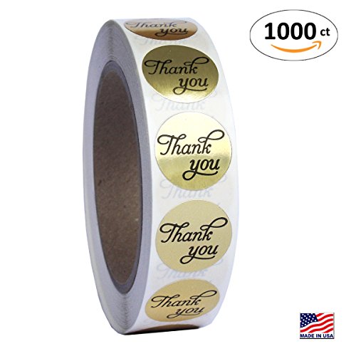 1 inch Round Gold Foil Thank You Sticker Labels in Script/Calligraphy Print, 1000 Labels per Roll, 1" diameter