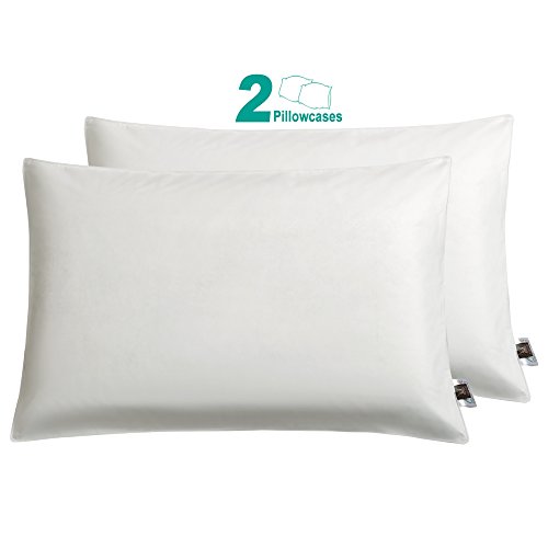YALOVO Pillow Case Covers With Zipper 2-Set 100% Cotton Pillowcase White Queen 20 X 30- Inch From Germany's High-tech Fabrics,Anti-microbial and Anti-mite Breathable and Comfortable(White)
