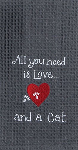 - "All you need is Love? and a cat" towel with a large red heart and paw prints