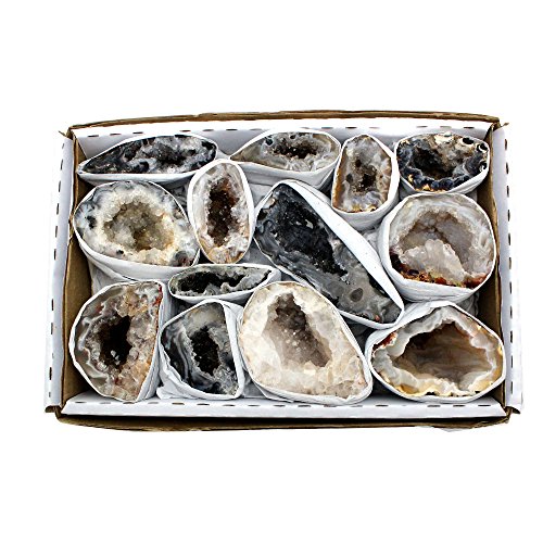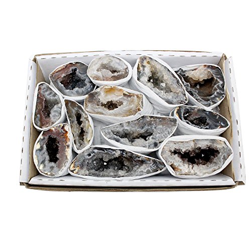 Rock Paradise Exclusive Natural Geode From Brazil 1.5-2 lbs Full Box Approx. 10-15 pieces - Two Styles - COA. The photos are taken in house of our stock and items will vary in shape and size. STOCK PHOTOS. Point sizes and other characteristics may vary slightly because they are made from natural stones. Some will be longer and thicker than others. Please refer to the pieces in hand for size reference. Rock Paradise Exclusive COA Find more great pendants and stones in our shop. Search Rock Paradise on Amazon. We also have many bulk deals available! Direct manufacturer from Brazil, but all products ship from the USA!Feature