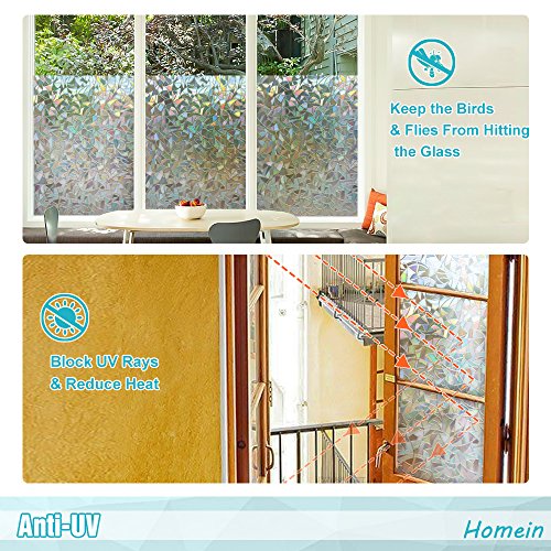 Window Films 3d Decorative Glass Film Non-Adhesive Home Window Tint Film UV Blocking Heat Control 17.7In. By 78.7In. (45 x 200Cm)