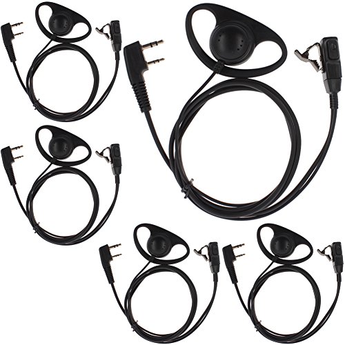 Tenq 5pack D Shape Earpiece Headset PTT for Kenwood Puxing Wouxun Baofeng Two Way Radio Walkie Talkie 2pin