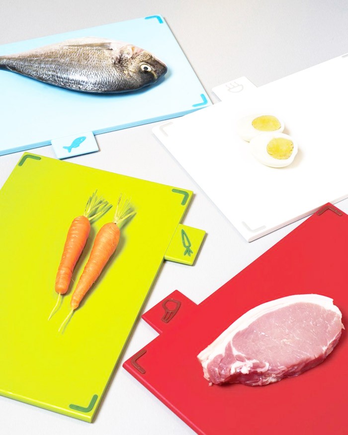 滑り止めのラバーが付いています。4つの用途で使い分けることにより衛生的に調理できます。