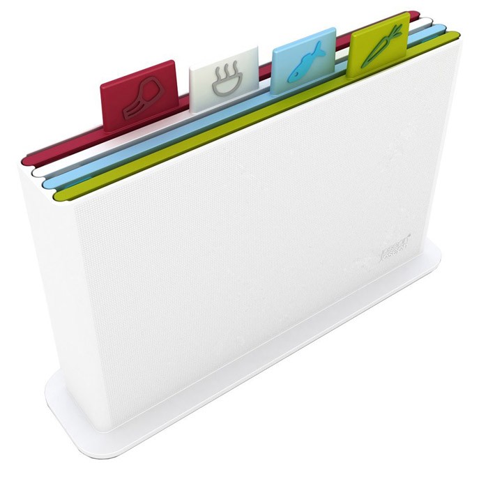 「ジョゼフジョゼフ インデックスまな板 アドバンス 4枚入り ホワイト」は、インデックス付きのカッティングボード(まな板)です。