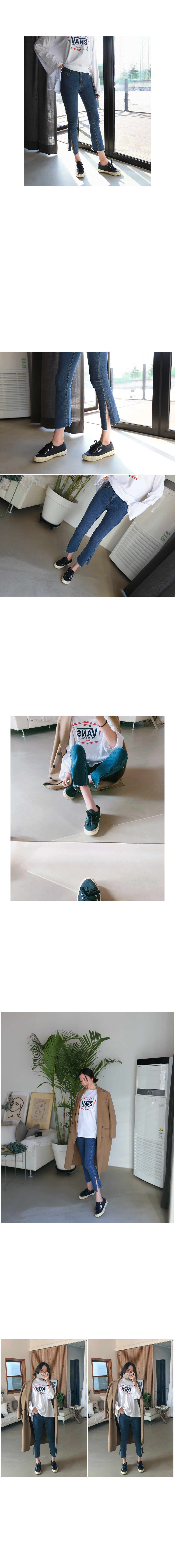 밑단에 깊은 트임을 주어 유니크하게 연출이 가능한 청바지입니다 ^^