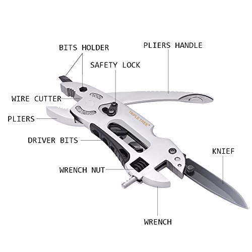 Triple Tree Multitool Stainless Steel Multi-functional Tools Adjustable Wrench with Knife/Plier/Wire Cutter /Spanner/Screwdriver