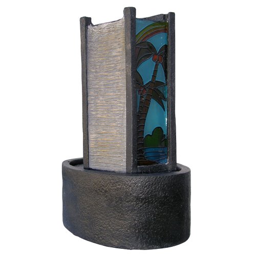 ORE International RD-LX62214 Stone Palm Tree Glass Fountain with Light, Small