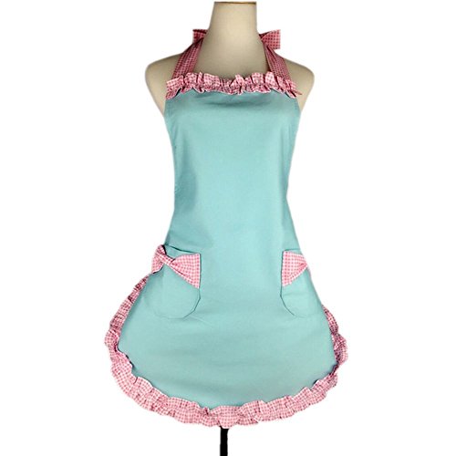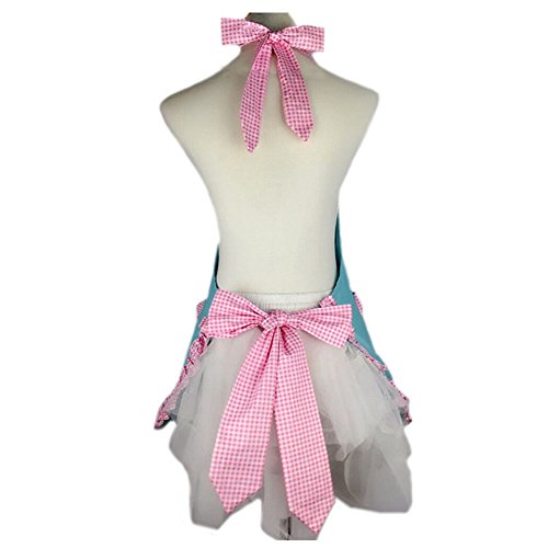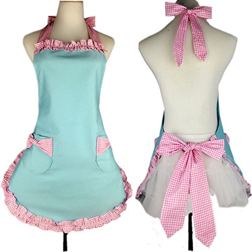 Aprons for Women Plus Size, Sween Blue Bottom Pink Grid Cooking Cute Retro Aprons,Adjustable Bib Aprons With Pockets and Extra Long Ties 28x28 inch (Pink)