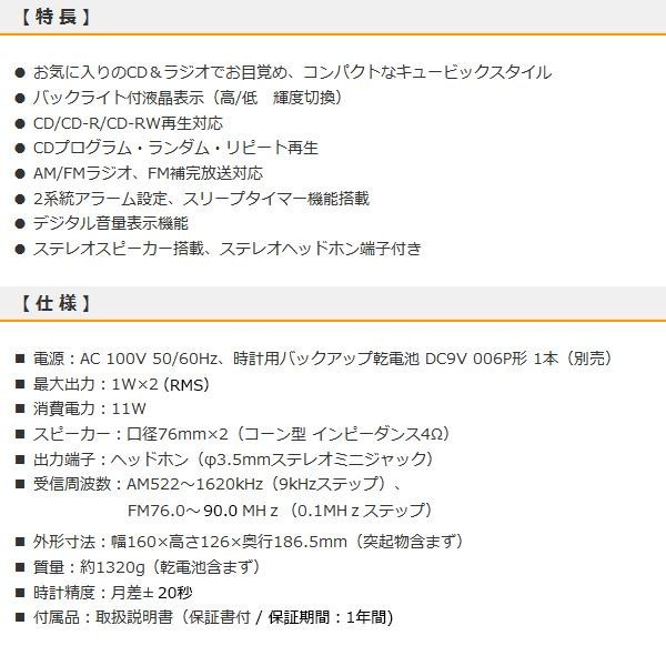 コンパクトなキュービックスタイルのCDクロックラジオ!!