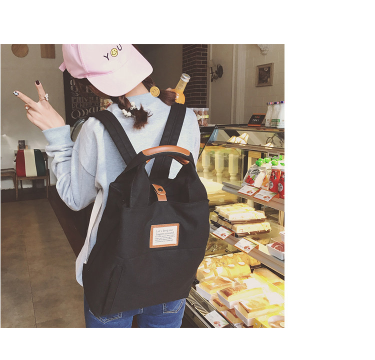 原宿风大容量双肩包女韩版帆布潮流时尚百搭文艺范潮背包学生书包