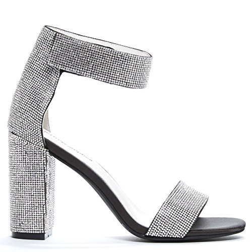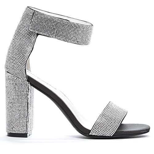 Product Description Jeffrey Campbell fans are never ones to shy away from the dance floor. These chunky heeled sandals are embellished with tiny crystals and are made for a big night out. These are an obvious choice for a party dress but are also just right for cropped denim and a bomber jacket. 0