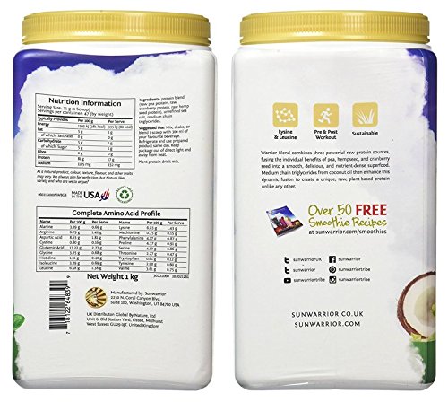 What makes WARRIOR BLEND so spectacular? Synergy! Each ingredient is exceptional alone, but when selectively combined in a revolutionary new proprietary formula, WARRIOR BLEND is overwhelmingly superior to any of its single components. This dynamic fusion creates a unique, raw, plant-based protein with a complete amino acid profile.WARRIOR BLEND is the next generation in raw, plant-based protein. An easily-digestible, nutrient-dense superfood, perfect for those who want to be ultra-healthy and fit. Best of all - it tastes phenomenal! Complete protein contains all essetnial amino acidsCreates a feeling of satiety (fullness)Promotes muscle functionIdeal for healthy weight-lossEasy to digestIncreases energyWARRIOR BLEND is a green product and suitable for any diet or lifestyle (NOT JUST FOR VEGANS)! The patented, natural, cold extrusion process is free of solvents, GMOs, radiation, artificial colors, and preservatives.Feature