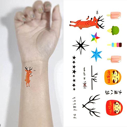 Oottati Small Cute Temporary Tattoo Ice Cream Deer Star Damour Budaoweng (2 Sheets)