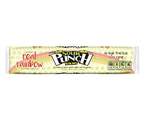 -. Binding : Grocery -. Brand : Sour Punch -. EAN : 0041364056258 -. Feature : Each Unit includes a 12 Pack of 1.5oz trays perfect for sharing and snacking on the go / TRY OUR NEW NATURALLY FLAVORED and NATURALLY COLORED Real Rainbow Sour Straws. A fruity mix of Strawberry, Lemon, Green Apple and including NEW tangerine / Made with NO High Fructose Corn Syrup but with the same great Sour Punch Taste you love. / You wont feel guilty indulging in this delicious low calorie and always kosher treat! / Proudly made in the USA -. Label : American Licorice-Sour Punch -. Manufacturer : American Licorice-Sour Punch -. NumberOfItems : 1 -. PackageQuantity : 1 -. ProductGroup : Grocery -. ProductTypeName : GROCERY -. Publisher : American Licorice-Sour Punch -. ReleaseDate : 2017-08-01 -. Studio : American Licorice-Sour Punch -. Title : Sour Punch Real Rainbow Chewy Candy Straws Tray Caddy, 1.5oz Tray (12 Pack) -. UPC : 041364056258