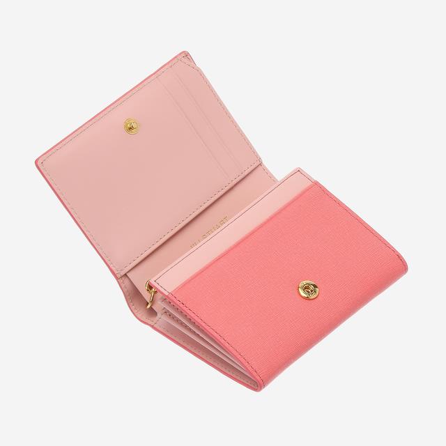 고급스러운 소가죽 바탕에 로고 장식과 탈착가능한 다이아몬드 참 장식으로 포인트를 준 반지갑입니다.