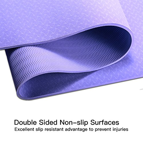 NON SLIP YOGA MAT- Double-sided non-slip texture allows the mat grip ground more firmly, unmovable to make sure that you are doing professional Yoga movements in a more balanced and safer way in home and gym. Non-slip on wood floor, tile floor, cement floor.