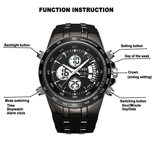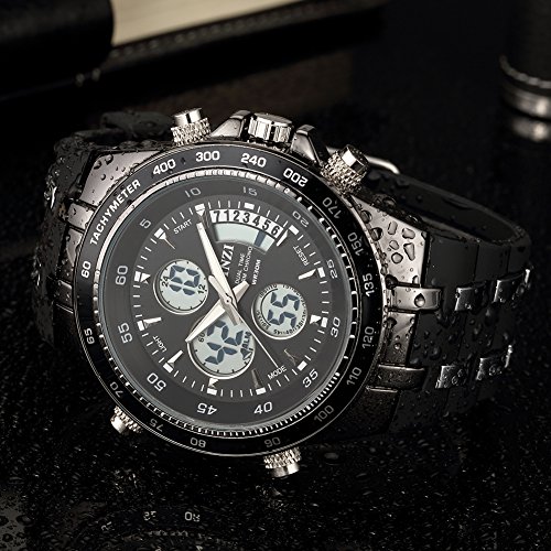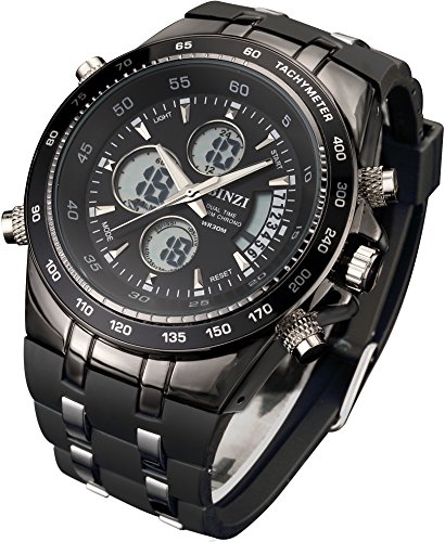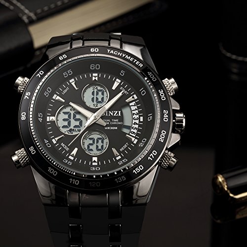 -. Binding : Watch -. Brand : BINZI -. Department : mens -. Feature : Imported / Display the day & date 12h/24h, Clock / Men's analog digital watches, luxury sports watches with silicone strap / Daily waterproof, can not wear when swimming and bathing / BINZI OFFICIAL STORE has been providing speedy and friendly service and quality products. Your satisfaction is always guaranteed. Do not hesitate to contact us at if you have any questions or inquiries -. Label : BINZI -. Manufacturer : BINZI -. MPN : BINZI1703B -. PartNumber : BINZI1703B -. ProductGroup : Watch -. ProductTypeName : WATCH -. Publisher : BINZI -. Studio : BINZI -. Title : BINZI Men's Fashion Big Face Sport Quartz Watch Analog Digital Dual Time Wrist Watches with Black Band