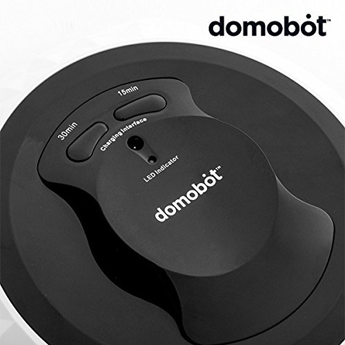 Mit Domobot können Sie die Betriebsdauer (15 oder 30 Min.) selbst festlegen. Aus Kunststoff. Ungefähre Maße: (Durchmesser x Höhe): 22,5 x 7 cm. Inklusive 20 Mikrofasertüchern, 1 Poliertuch aus Polyester und Aufladegerät: CA 100-240 V, 0,5 A, 47-63 Hz / CC 6 V, 0,5 A. Ladedauer: ca. 3 Stunden. Batterielaufzeit: ca. 1,5 h.
