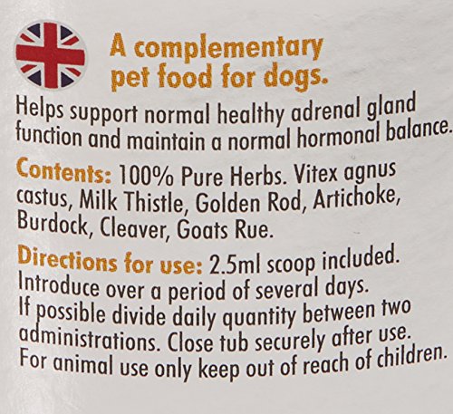 To help support a healthy adrenal gland function and maintain a normal hormonal balance, whilst maintaining healthy liver and kidney function, improved energy levels and general coat condition in all dogs.