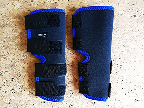 This Therapeutic Dog Hock Brace is constructed from a neoprene outer shell and Welltex fabric infused with ceramic particles.