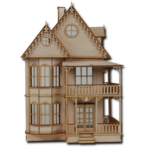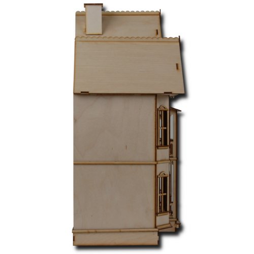 -. Feature : Precision Laser Cut Tab/slot assembly / Four Spacious Rooms, Laser Cut Windows / Working Front Doors, Working Side Doors / Unfinished Maple Wood 1/2 inch = 1 foot / True miniature 1/2" scale Assembly Required