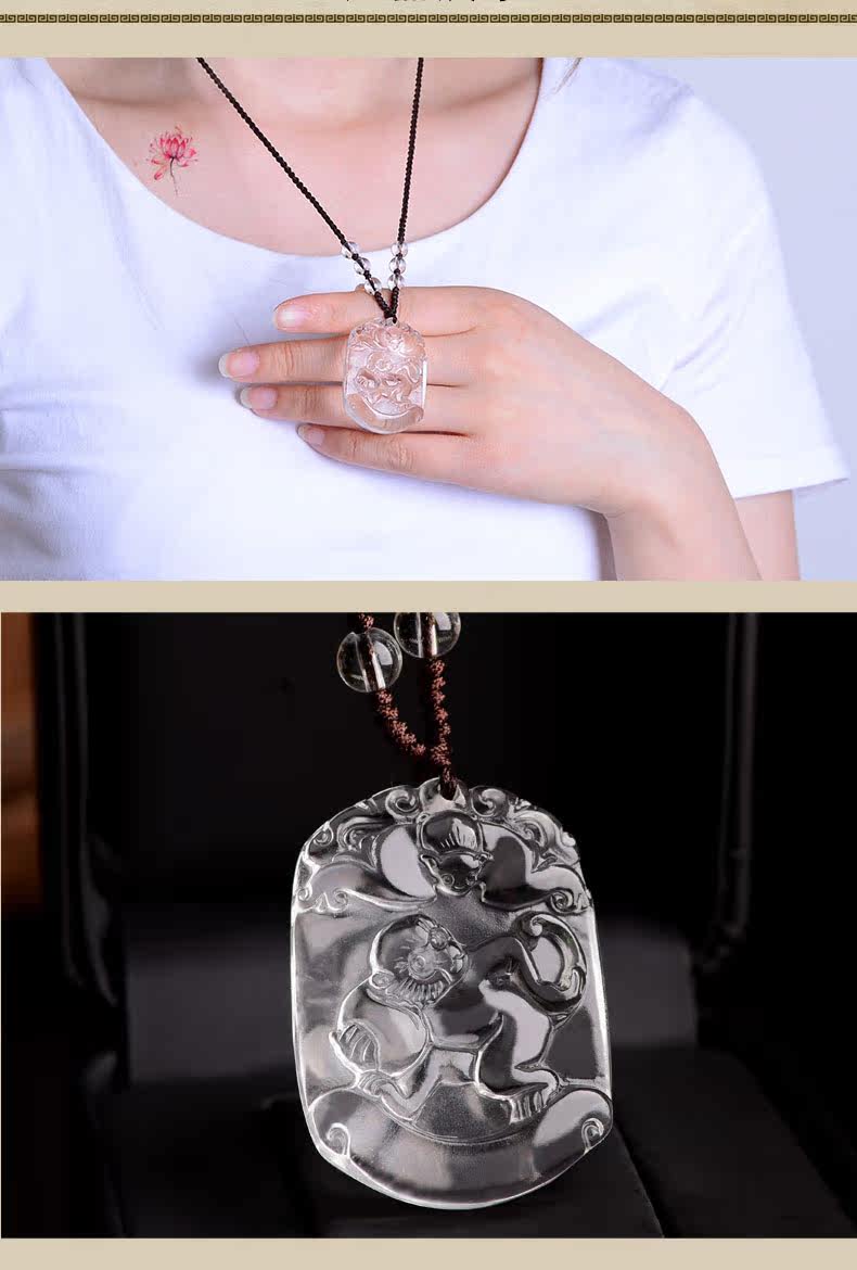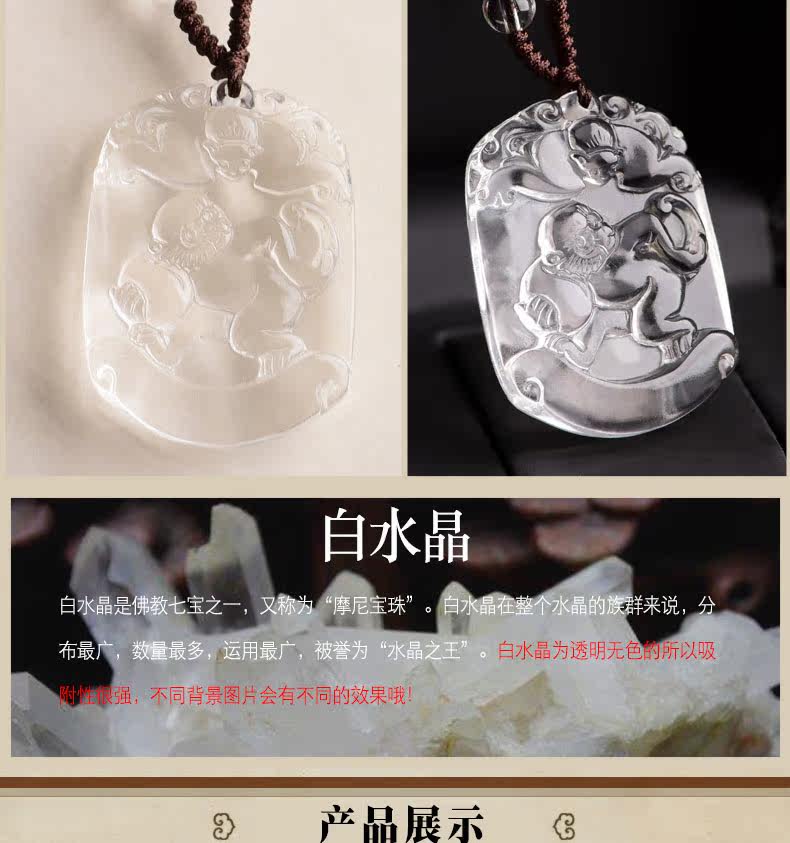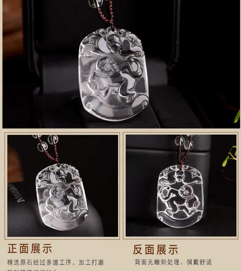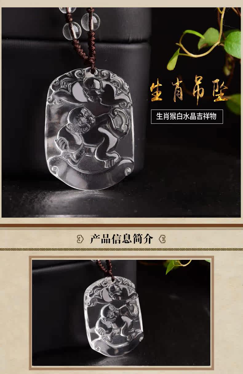 开光天然白水晶吊坠 十二生肖属猴男女款项链情侣挂件转运饰品