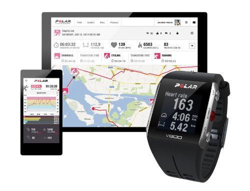 The Polar V800 encompasses all of Polar's best design and technology and is used by top athletes such as IRONMAN world champion, Frederik Van Lierde. It features an integrated GPS and supports multiple sports, from running, cycling and swimming to skiing and triathlon. Not only does each sport benefit from its own customizable profile, but the Polar V800 also seamlessly changes between sports, recording your full performance, including transition times between each sport.Polar V800 key features:*Integrated GPS: fast, accurate speed, distance and route measurement.*Smart and accurate monitoring of training sessions with an integrated activity tracker that automatically adjusts your recovery status to give a true account of how much rest you get in between hard sessions. Now every movement is registered, from your toughest workout to a walk up the stairs*Instant analysis and in-depth insights into all your training and recovery on the Polar V800 when used with the Polar Flow web service.*Records your heart rate even while swimming - making it perfect for triathletes - and includes the most accurate altitude readings with a built-in barometric pressure sensor.*Rechargeable battery which offers up to 14 hours of training time, 50 hours in low power GPS mode, or 30 days in time mode with 24/7 activity monitoring.*Running Index data shows your aerobic fitness and running economy.*Orthostatic Test to help you avoid over-training by gaining insight into recovery status over the long term. You can access four weeks of your training history at the touch of a button*Gorilla Glass face set in stainless steel with an aluminum core and soft, breathable polyurethane straps.*Updatable software which will allow users to add new features from the comfort of their own home as they become available. The wireless connection to a smartphone creates the possibility for further features, suc