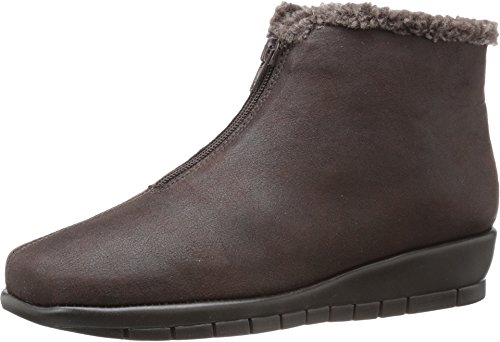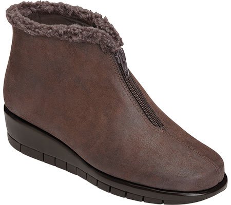 Bundle up in style. A touch of fleece around the ankle adds softness to this suede ankle boot with front zipper and 1½” wedge. You’ll love how the stitch ’n turn technology allows your foot to bend as you walk. The memory foam footbed adds extra “squish” (it’s a technical term!) to each step.Feature