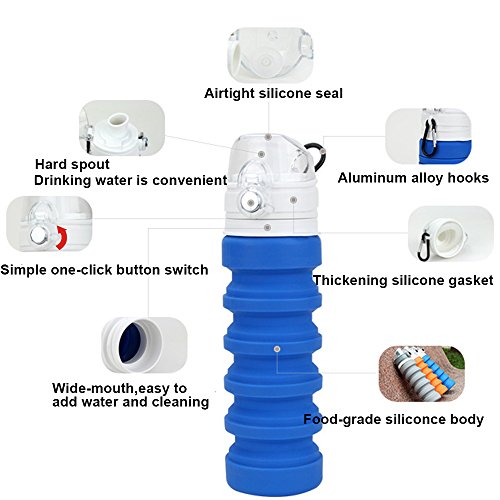【 LEAK-PROOF 】 Our Collapsible Water Bottle Features an Air-return Valve and a Safety Lock .Watertight Seals Throughout Bottle, the Lock Ring Prevents the Bottle from Accidentally Opening and Effectively Prevents Leaks.