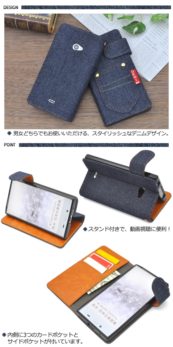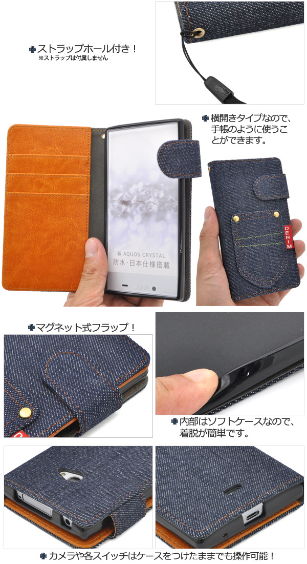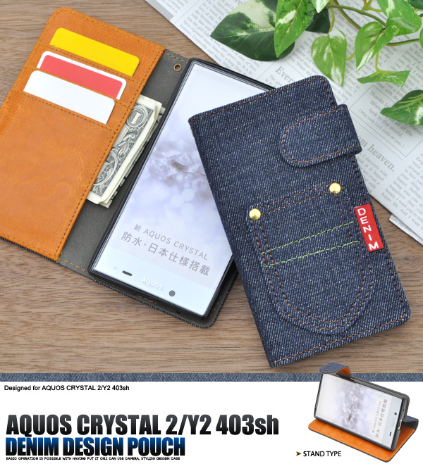 デニムデザインのAQUOS CRYSTAL 2/Y2 403sh用スタンドケースポーチ。