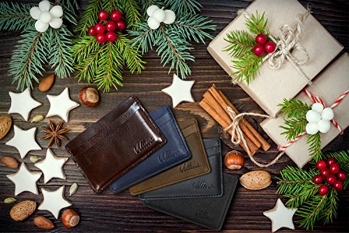 -. Feature : 100% REAL LEATHER: Crafted out of genuine leather and never lined with heavy fabric, our luxury card case is impressively lightweight, ultra slim and unbelievably easy to carry in your pocket, purse or briefcase. / MADE IN UKRAINE: Every Villini slim credit card wallet is made with lots of love in Ukraine, a country known to produce some of the finest modern luxuries on the market. Craftsmanship and quality don't get much better than this! / FOUR CARD SLOTS:Featuring 2 card slots on one side and 2 on the other, our card holder has the perfect capacity for everyday use or traveling. Stuff it with business cards, bank cards, transit cards or ID cards as needed / CASH/BILL POCKET: The middle of the leather card keeper P.R.Ies open, revealing the ideal spot to discreetly store your bills or important documents. No other women's wallets or men's wallets are as all encompassing as this one! / GREAT GIFT IDEAS: Villini thin card holder make excellent gift ideas for men and women, especially those who prefer to streamline the gear they carry with them when traveling or commuting.
