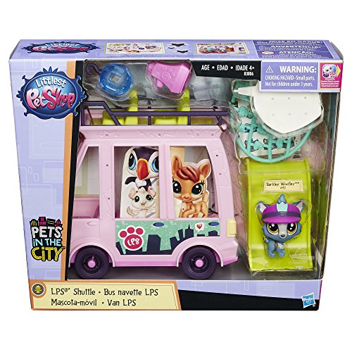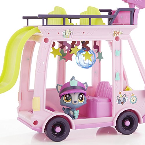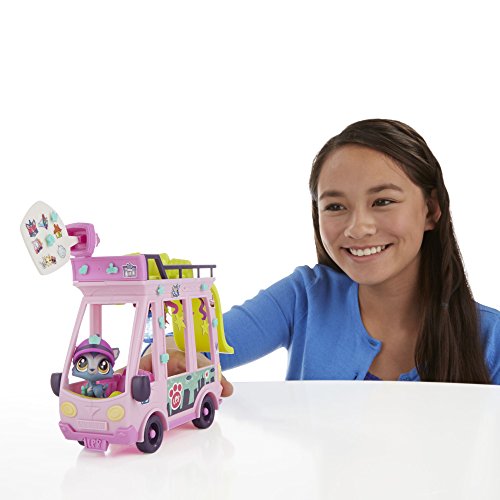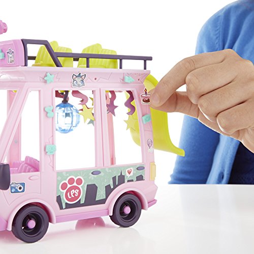 Take the pets on a tour through Downtown City in their very own double-decker shuttle bus! A disco ball and star-shaped banners create a real party atmosphere, and the emoji bubble lets everyone know what a fun time the pets are having – right through the megaphone on the roof! Decorate the shuttle with Deco Bits pieces and stickers for a custom look. Shuttle comes with pet (Barkley Woofley #92) with hat accessory – looks like he's the official driver of this fun-filled vehicle. Featuring fun bobble-head motion, he makes a great addition to any pet collection. And girls can bring their pets to life in the LPS Your World app*. Once the app is launched, simply hold the pet and scan the code to unlock it in the game! Play activities, decorate, and design a cool Littlest Pet Shop world digitally! *Available at least through December 31, 2017. Not compatible with prior apps, earlier LPS pets, or current LPS smaller pets. Littlest Pet Shop Your World app works with select iPhone, iPad, iPod touch, and select Android devices. Updates may affect compatibility. Check littlestpetshop.com for availability, compatibility, and instructions. In-app purchases available. Not available in all languages or markets. Littlest Pet Shop and all related characters are trademarks of Hasbro.Feature