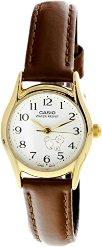 Brand, Seller, or Collection Name:Casio Model number:LTP1094Q-7B7 Part Number:LTP-1094Q-7B7RDF Item Shape:Round Dial window material type:Mineral Display Type:Analog Clasp:Buckle Case material:Stainless steel Case diameter:23 millimeters Case Thickness:6 millimeters Band Material:Calfskin Band length:Women's Standard Band width:12 millimeters Band Color:Brown Dial color:White Calendar:No Special features:measures-seconds Movement:Quartz Water resistant depth:50 Meters