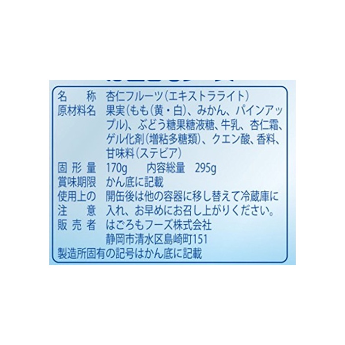 원본상품명: はごろも 甘みあっさり杏仁フル?ツ 295g×4個 (4061)